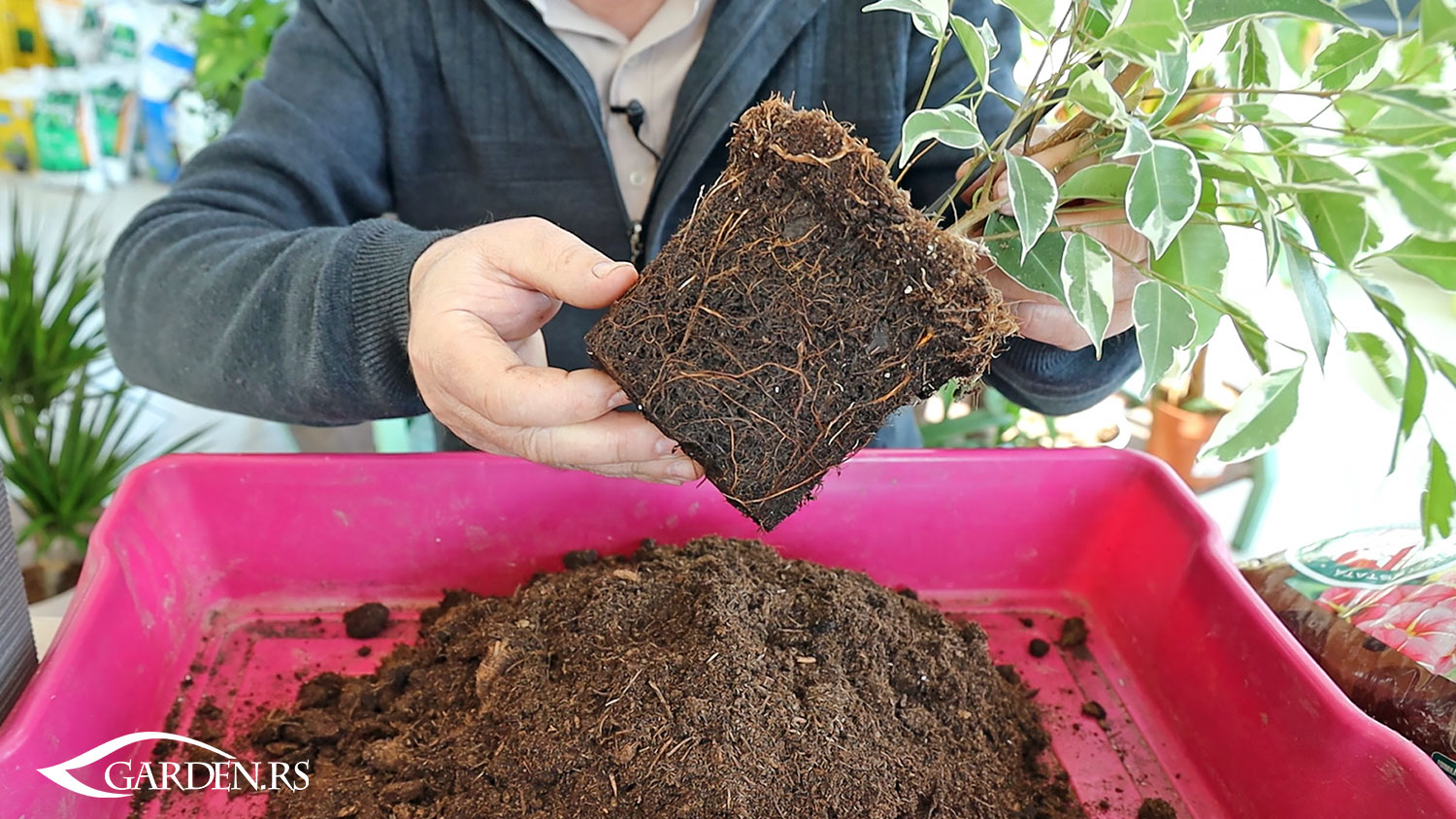 - biljku postavite tako da gornji deo korena bude u nivou ivice saksije